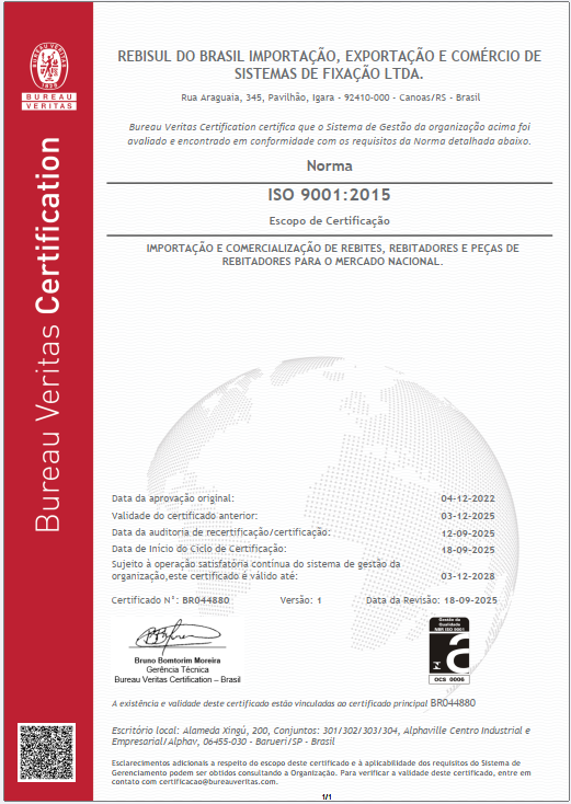A Rebisul do Brasil está comprometida em fornecer rebites,
